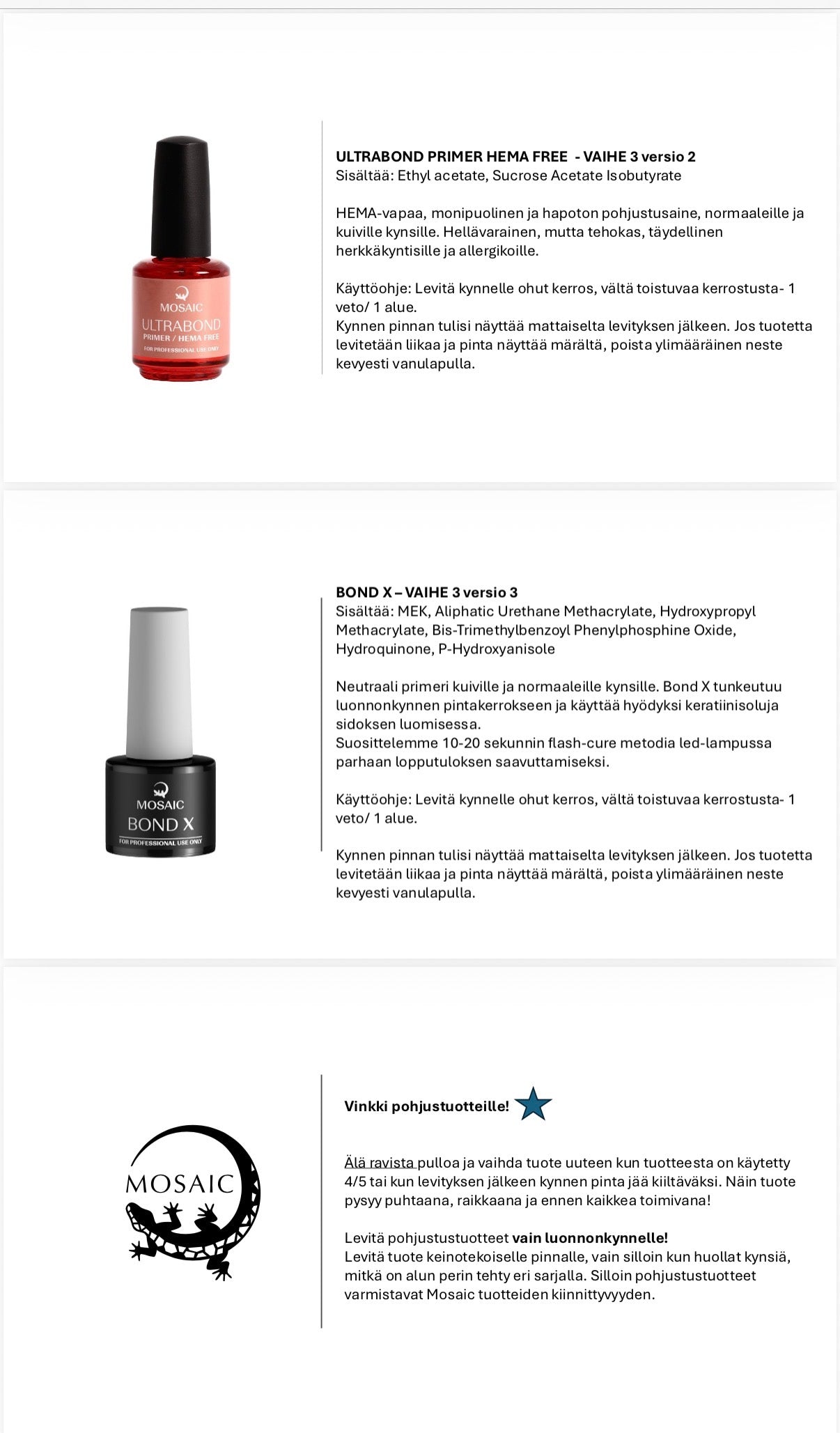 Suosittelemme 20 sekunnin flash-cure metodia led-lampussa parhaan lopputuloksen saavuttamiseksi.